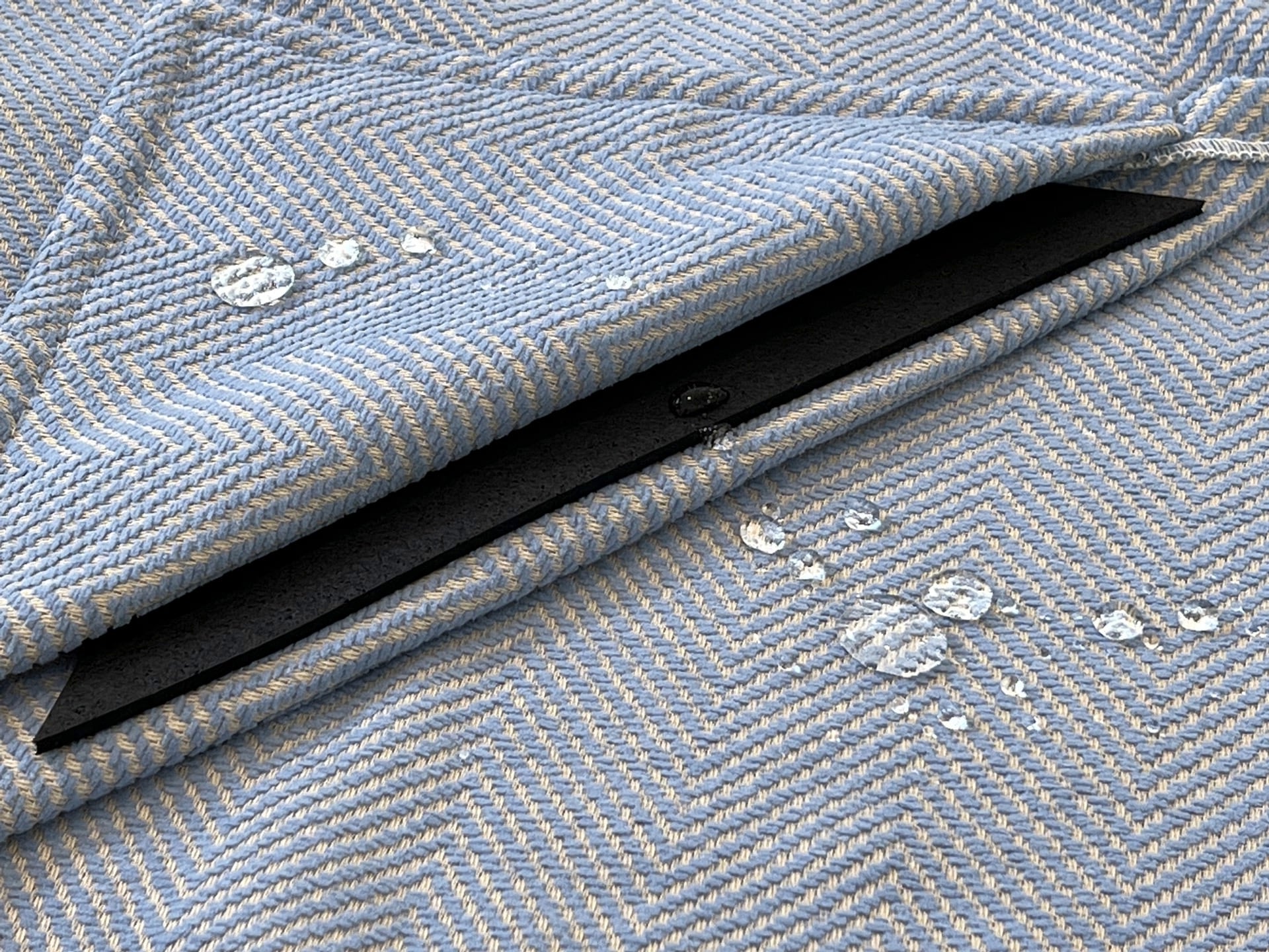 Note that LiLLE products are made from a breathable soft material and are not waterproof. They may soak through during a steady downpour or in heavy rain. If the forecast is for heavy rain please bring your throws, blankets, cushions and outdoor pillows inside.